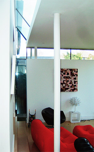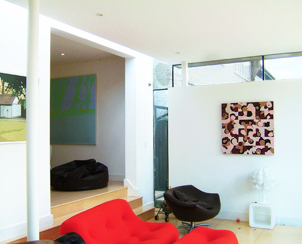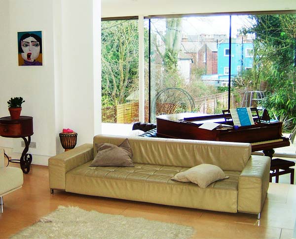 Careful planning created a totally open plan ground floor with two pairs of sliding doors separating the central kitchen from the adult and children’s living areas. This ultimate party house has a flexibility of use to suit the clients' lifestyle. The addition of a full width glazed extension creates views and provides easy access to the garden.